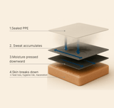 DRYE uses a dual-layer textile engineered for sealed use. No membranes. No coatings. Just controlled moisture displacement.Changes in the skin environment