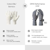 Conventional gloves and liners are designed for airflow — not sealed, high-pressure environments like gloves. Inside gloves, sweat has nowhere to go. Under pressure, moisture stays trapped against the skin — softening the barrier and making irritation harder to recover from. DRYE was engineered for sealed environments. Instead of absorbing sweat, it displaces moisture away from the skin, before pressure and friction can break it down.